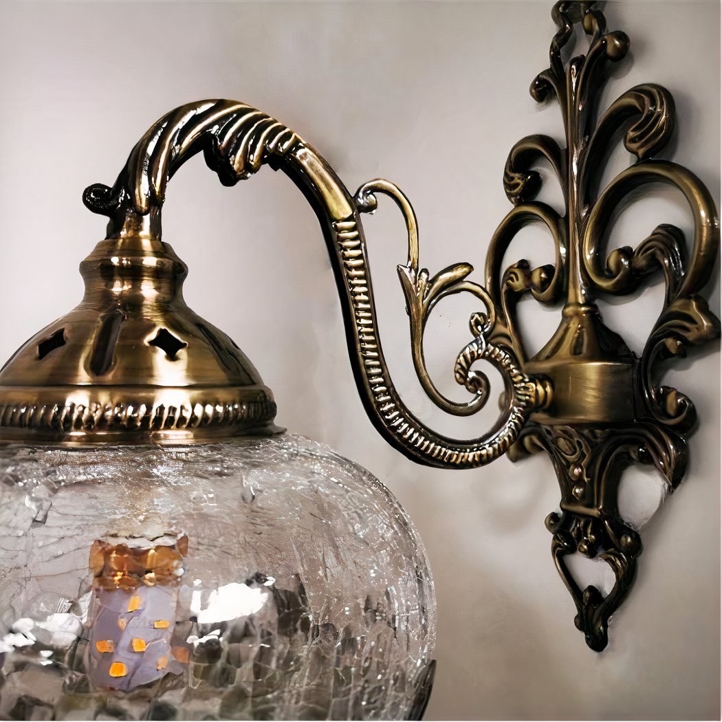 Scoprite la magia della nostra applique orientale in vetro crepato, progettata per illuminare il vostro spazio con eleganza e delicatezza. Grazie al suo design accuratamente studiato, questo pezzo diffonde una luce morbida e rilassante che trasforma immediatamente l'atmosfera della stanza.