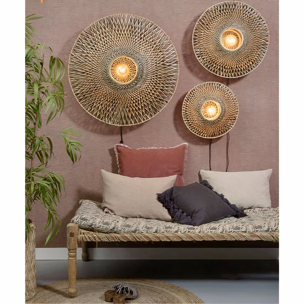La nostra applique in bambù intrecciato è disponibile in tre dimensioni, per offrire la flessibilità necessaria per adattarsi a qualsiasi ambiente. Utilizzata da sola o come parte di una composizione di più stanze di dimensioni diverse, questa illuminazione è ideale per creare un'atmosfera bohémien chic, che invita a rilassarsi e a staccare la spina.