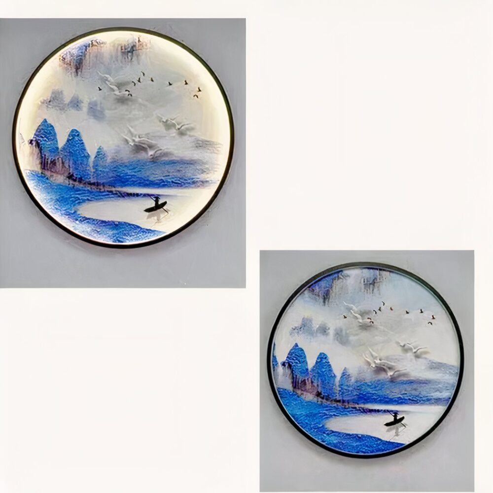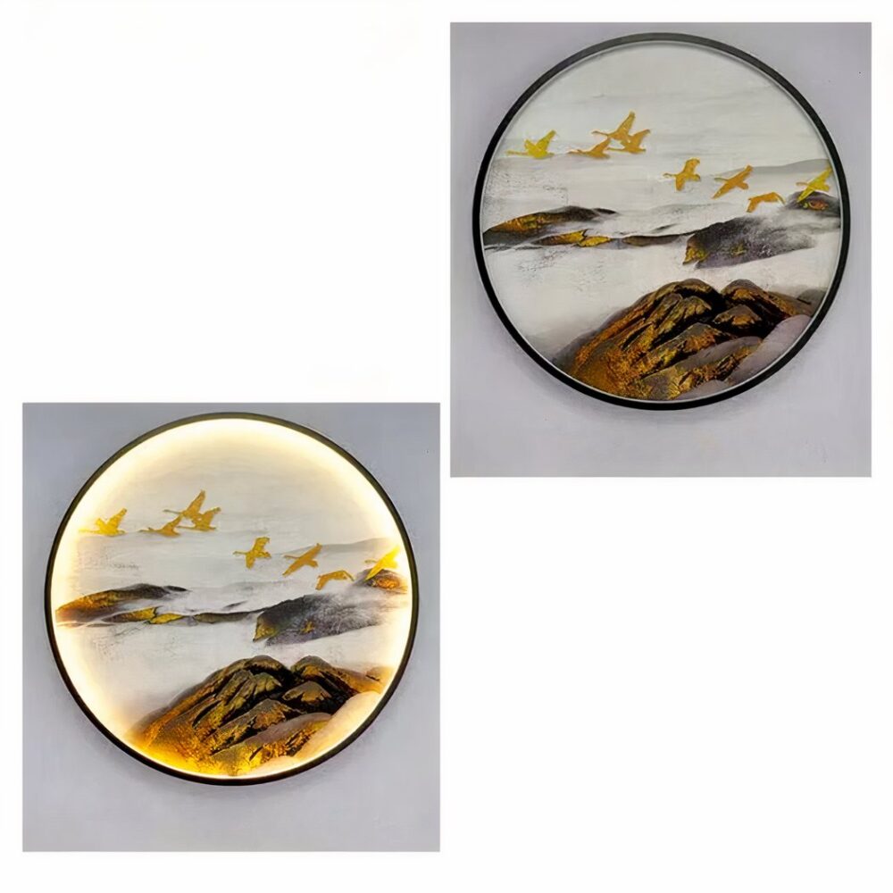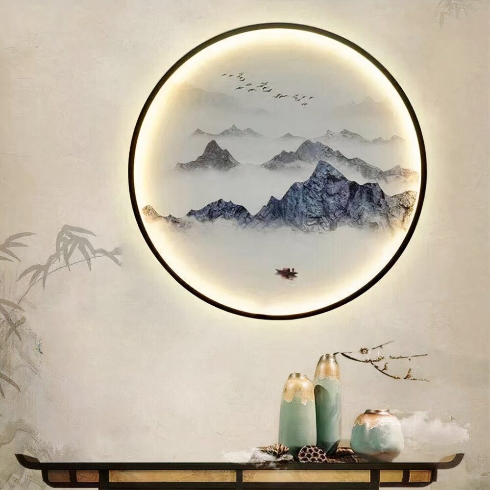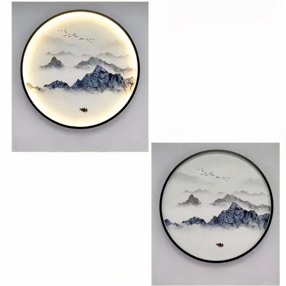 Lampada da parete rotonda con paesaggio giapponese