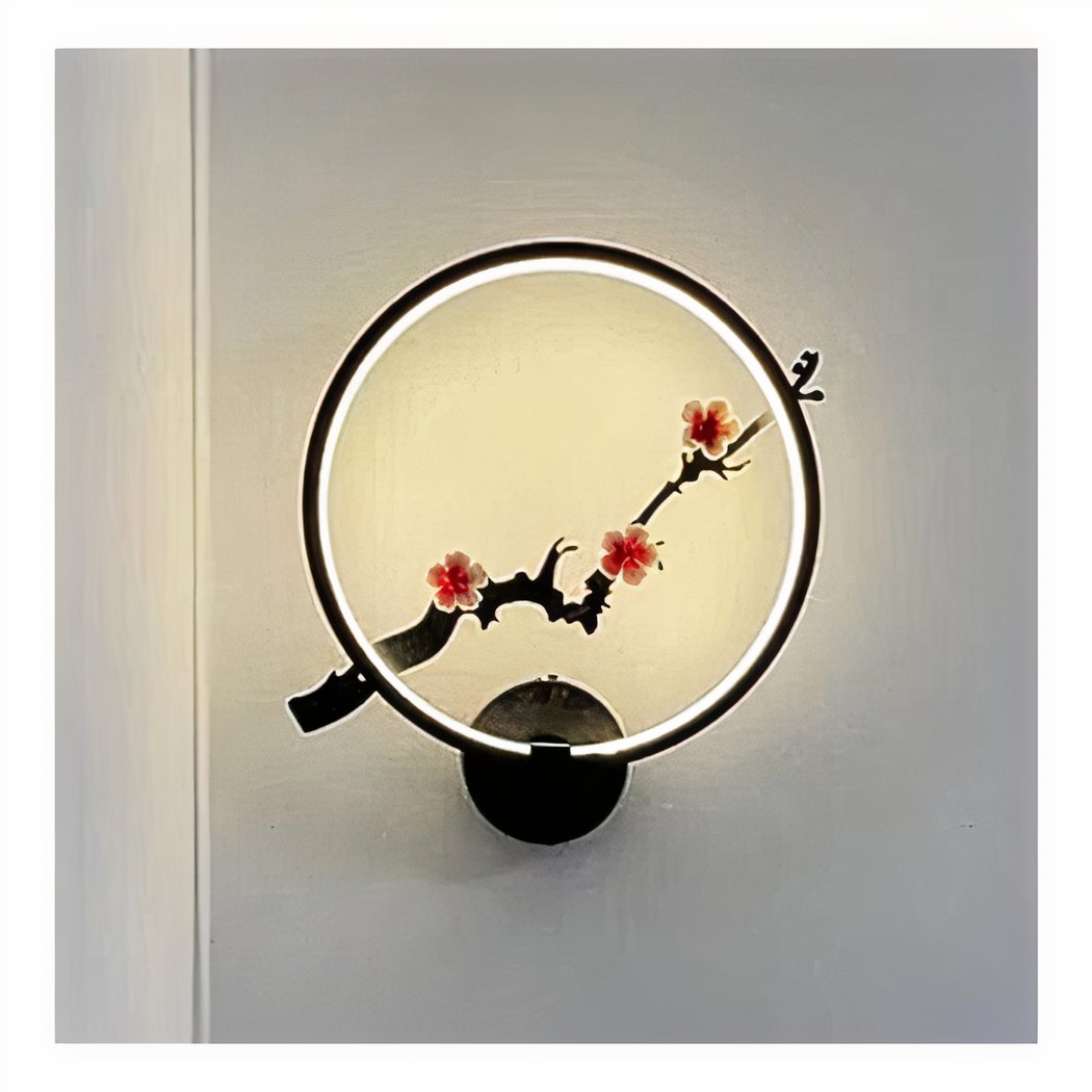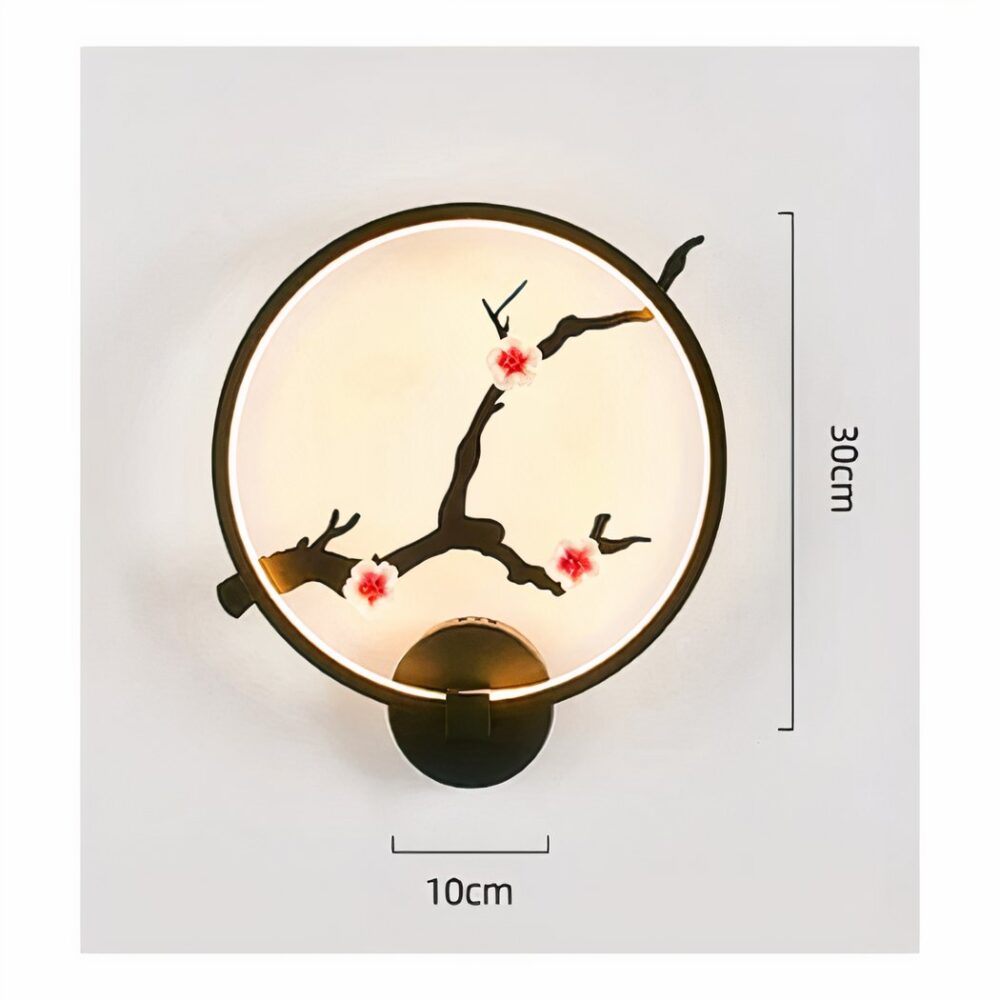 La nostra lampada da parete rotonda è perfettamente in linea con lo stile giapponese moderno, grazie al suo design minimalista impreziosito da delicati rami di sakura e dai loro fiori rosa. Questo pezzo combina l'estetica giapponese con un iconico motivo naturale che evoca la bellezza effimera e la delicatezza dei fiori di ciliegio.