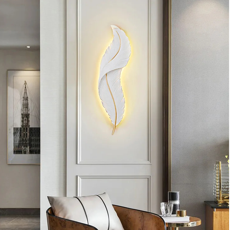 La luce soffusa che emana dal retro di questa lampada da parete crea un'atmosfera sommessa e decorativa. Grazie al suo design intelligente, la luce crea un alone intorno alla piuma, creando un'atmosfera rilassante nella stanza.
