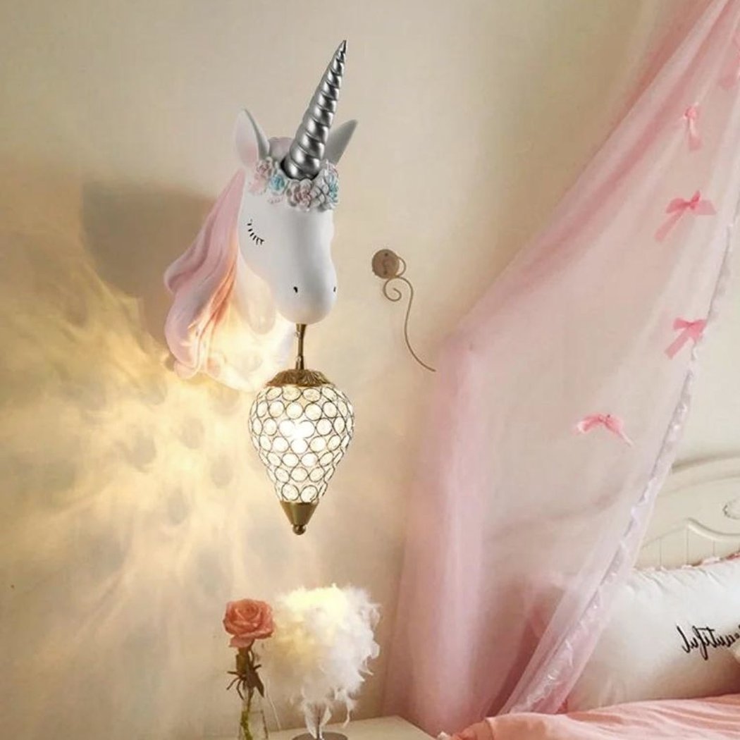 La nostra lampada a parete porta l'immagine di un unicorno maestoso nella macchina fotografica del vostro piccolo, aggiungendo un tocco di fantasia, morbosità e meraviglia al suo spazio vitale.