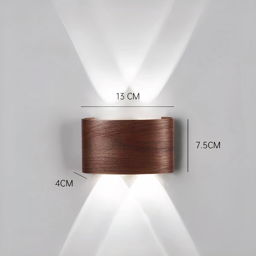L'illuminazione sopra e sotto l'applique crea un effetto visivo accattivante, mettendo in risalto il fine legno e diffondendo una luce piacevole. Questa doppia sorgente luminosa permette di giocare con i contrasti e di aggiungere profondità all'illuminazione ambientale.