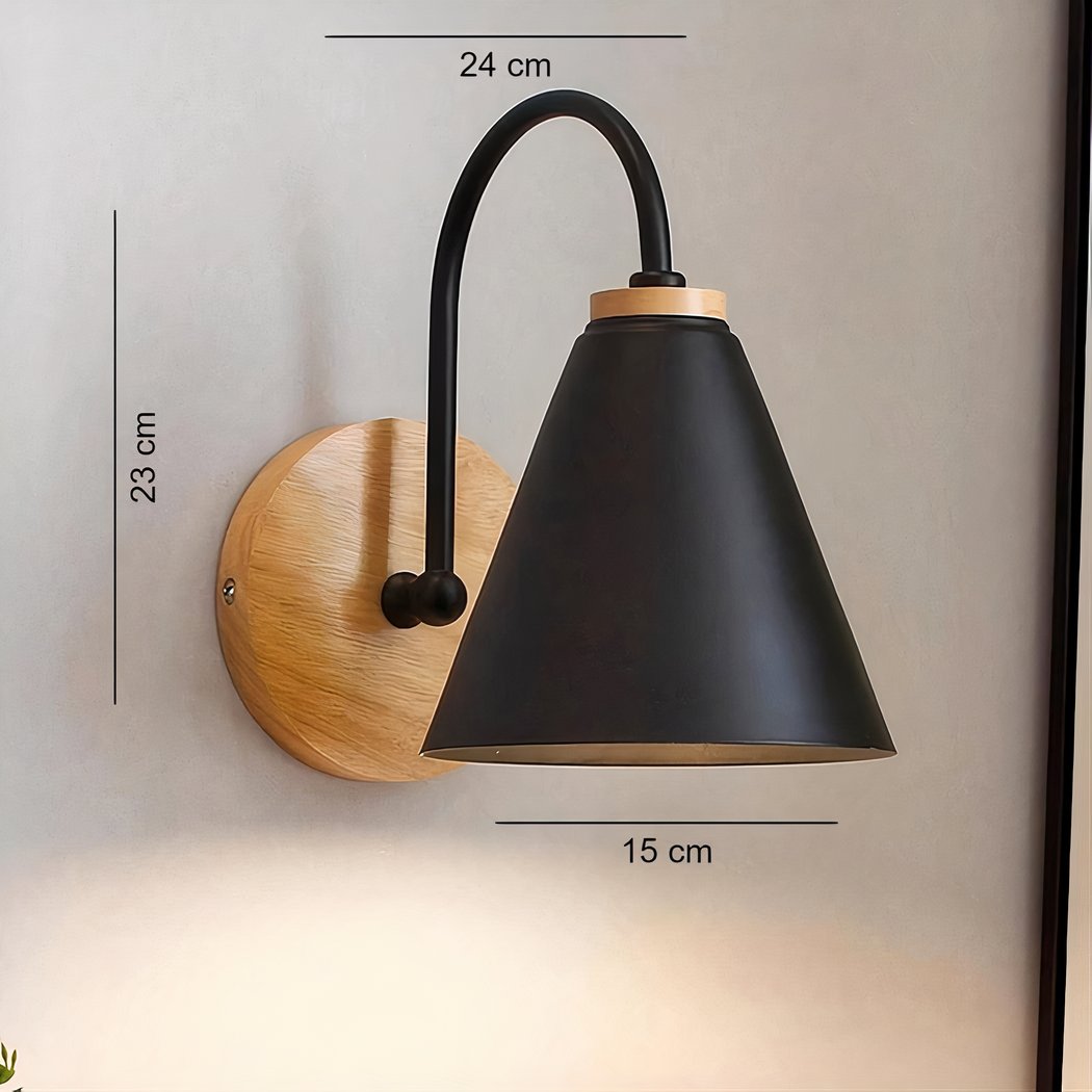 Questa applique di tendenza in stile scandinavo combina perfettamente il legno della base e il paralume in metallo, garantendo durata e facilità di manutenzione.