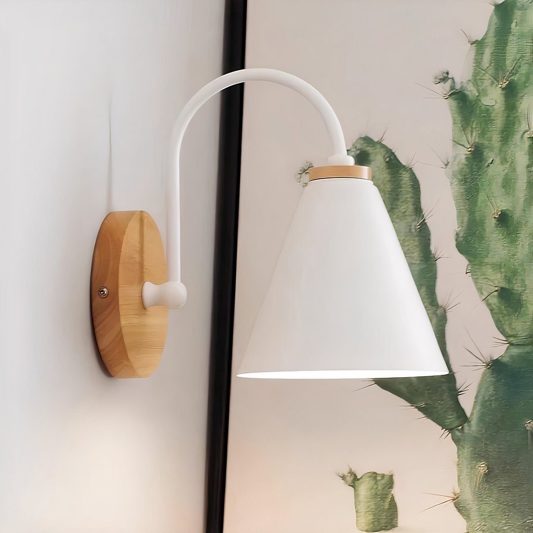 Questa applique contemporanea in stile scandinavo è un perfetto connubio di legno e metallo, che offre un design nordico pulito e moderno. Il suo paralume in metallo diffonde una luce d'accento discreta e calda, ideale per creare un'atmosfera accogliente in casa.